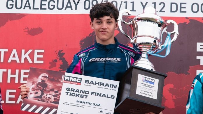El joven de General Rodríguez logró su clasificación al Mundial Rotax de Bahreín tras quedarse con el título de la Senior Max en la RMC Final Argentina a mediados de octubre con el equipo Cronos Racing Team. La consagración llegó a principios de octubre en el kartódromo Jorge Frare de Gualeguay, donde el piloto logró dos victorias -ganó las carreras 1 y 3- y dos poles position para coronar un fin de semana soñado.