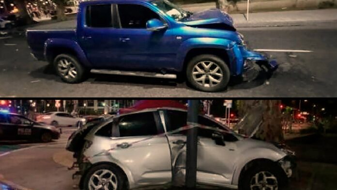 A raíz de ese choque, una bicicleta que avanzaba por la bicisenda también fue embestida. “Justo cruzaba la piba que no tenía nada que ver en el accidente”, lamentó Diego.